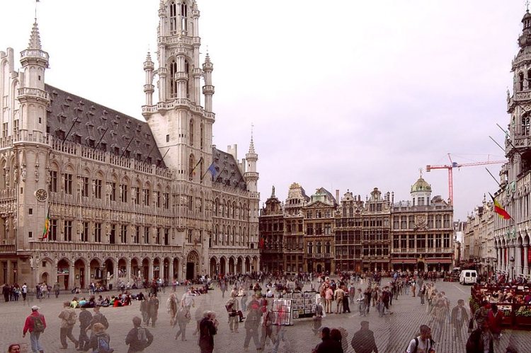 The Grand Place is the central square of Brussels. It is surrounded by opulent guildhalls and two larger edifices, the city's Town Hall, and the Breadhouse ( building containing the Museum of the City of Brussels. The square is the most important tourist destination and most memorable landmark in Brussels. The building measures 68 by 110 metres (223 by 361 ft), and it is a UNESCO World Heritage Site. Every two years in August, an enormous "flower carpet" is set up in the Grand Place for a few days. A million colourful begonias are set up in patterns, and the display covers a full 24 by 77 metres (79 by 253 ft), for area total of 1,800 square metres (19,000 sq ft).The first flower carpet was made in 1971, and due to its popularity, the tradition continued, with the flower carpet attracting a large number of tourists