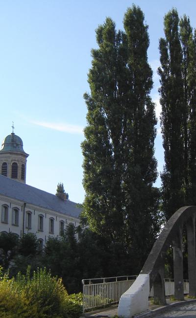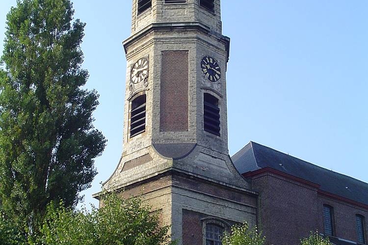 The Sint-Gerolf church is the church of the Drongense parish of Drongen-Centrum, in the East Flemish city of Ghent. This neo-Greek church was designed by Ghent's architect F. Cardon. The church is in the place of a former church of the old abbey of Drongen, whose only tower has been preserved. The church is dedicated to the martyr Gerulfus. This 49 m high tower rests on a square base, with six octagonal floors, crowned with a pepper-bushed coating. The tower thanks to this is nicknamed the pepper mill. The tower got its current form between 1732 and 1734, after its predecessor lost its lightning in 1727. The corresponding church building dates from 1859 and has never been used as abbey church.